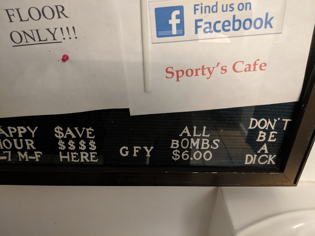 Sporty's Cafe Menu